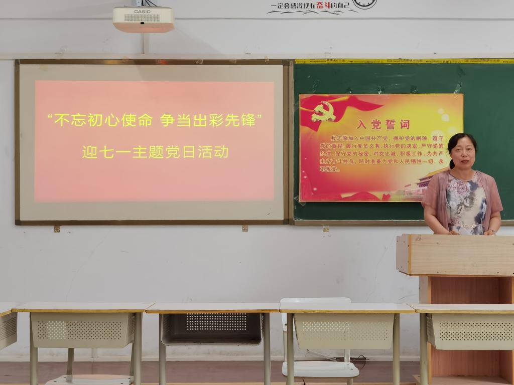 在集体观看庆祝建党99周年专题片《辉煌征程》之后,员莹书记以生动感人的事例和历史图片,阐述中国共产党人的初心和使命,即为中国人民谋幸福、为中华民族谋复兴。接着,通过“我们从哪里来”、“走过什么路”、“干过哪些事”三个问题,带领全体党员重温中国共产党光辉历程、不同阶段历史贡献,即党的奋斗史、创业史、发展史。通过回顾党的光辉历程,要求全体党员要牢记初心使命,筑牢信仰之基,补足精神之钙;做忠诚干净担当的好党员,勇挑重担,真抓实干,全心全意为党的教育事业作贡献。