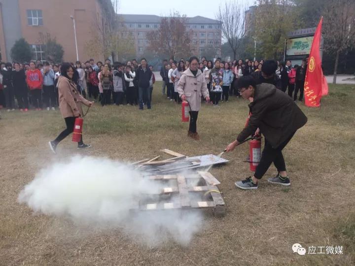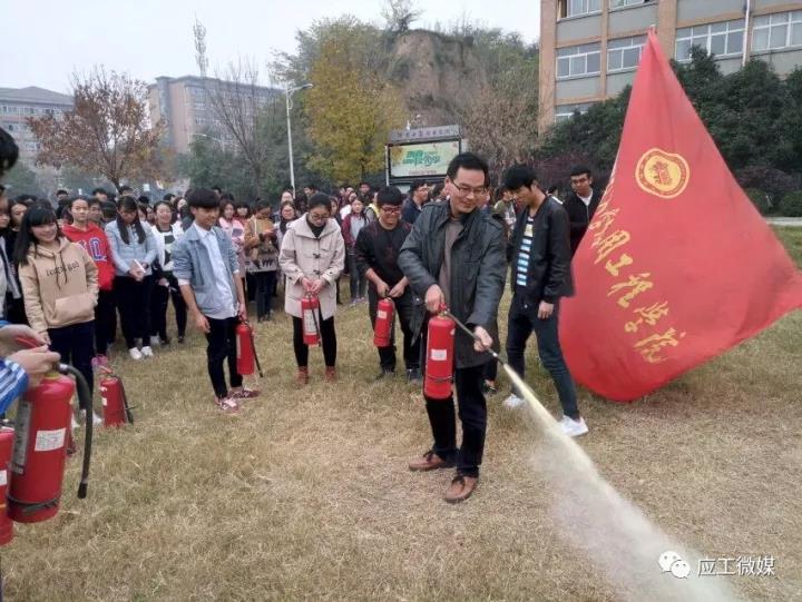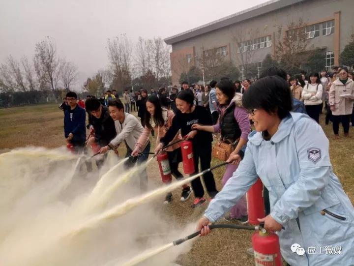 在开展在消防宣传的同时,学院还实地开展消防演练,由教师王永志示范消防灭火器的使用方法,之后同学们勇于实践,积极参与消防演练活动,通过亲自动手操作,很快掌握灭火器的使用方法。
