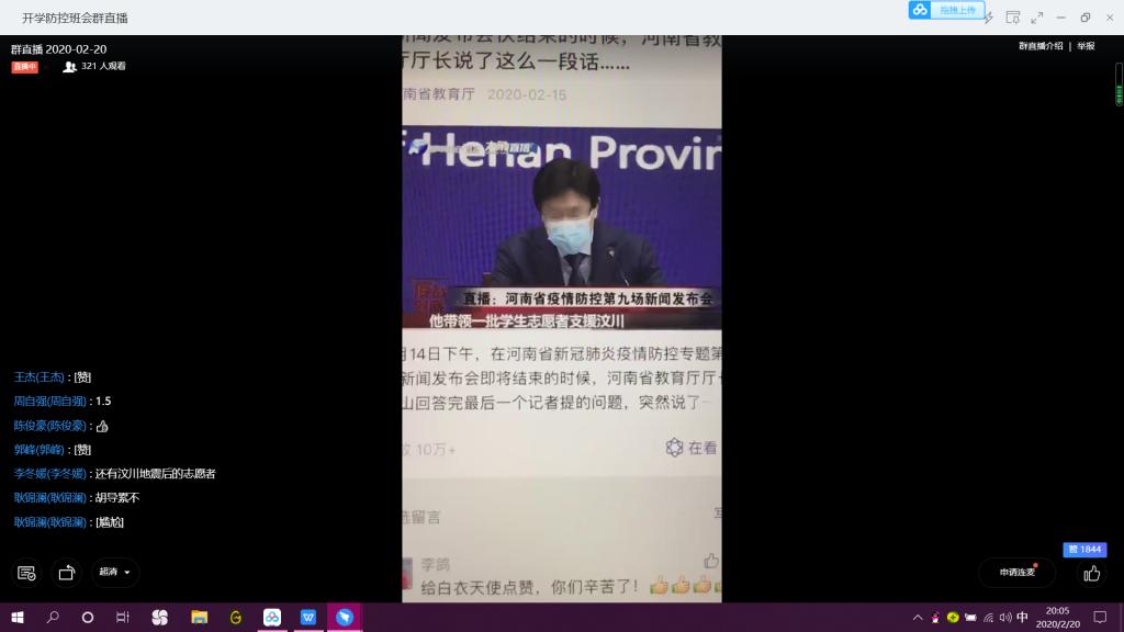 各班辅导员老师也从“面对疫情要沉着冷静”、“加强防范、齐心协力抗疫情”、“新时代青年勇担当”、“学院贯彻落实疫情防控工作的具体措施”以及共同学习河南省教育厅厅长郑邦山讲话等方面,通过网络、移动终端等方式开展线上教育,向同学们传达了这场没有硝烟战役中的爱与责任、勇气与担当,希望同学们在抗击疫情的过程中建立正确的价值观与人生观,练就直面困难的勇气和厚植为人民服务的情怀;充分利用这一契机,对学生们进行健康教育和生态文明教育:增强生命观教育,教育引导学生们珍爱生命,正确理解生命的真谛,正确看待生命中最为宝贵的精神财富;增强生态文明和环境保护意识,教育引导学生们尊重自然、敬畏自然,自觉保护野生动物。