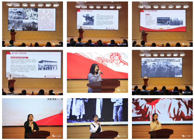 “几番回首惊华望,亡国悲歌涕泪多”,八十五年前,中华大地,黑夜沉沉,风雨如晦,数千名北平学生游行示威,揭露了日本企图吞灭中国的阴谋。“献身岂之危难时,报国尽在言行中”,八十五年后,我们生逢盛世,春潮涌动,自当秉承先辈遗志,化爱国之情为报国之行!比赛中,各位参赛选手声情并茂,细致地讲述历史,用自己的演讲道出那个时代的大学生的担当与责任。展现了当代大学生激情昂扬的精神面貌,亦或是回顾历史、缅怀革命战士;亦或是讴歌新时代新精神、点赞新中国。选手们用饱满的热情道出了当代大学生的爱党、爱国之情。